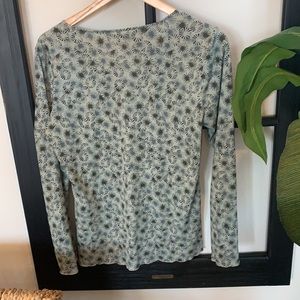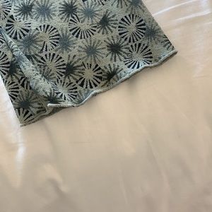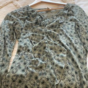 Beautiful soft greens, comfortable stretchy fabric. 100% polyester, wash and wear. Excellent condition.