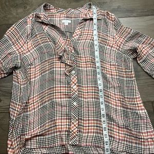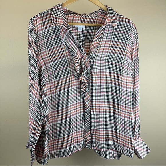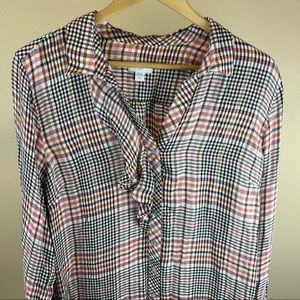 J.Jill Ruffled Long Sleeve Blouse Size Large Petite 100%Rayon Gently Used Good Condition
