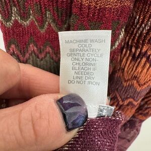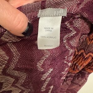 Excellent condition. 100% acrylic. Zig-zag pattern with warm colors. Roughly 28”W x 72”L with 3” fringe