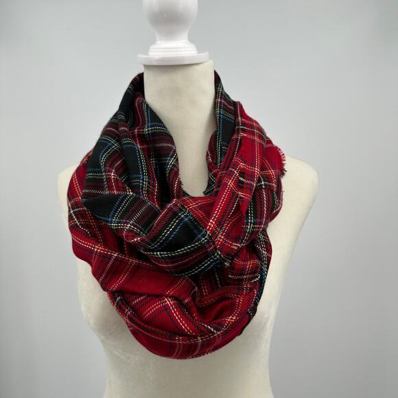 J.Jill Scarf WMNS Red Black Multi Mixed Plaid Tartan Infinity Winter Holiday