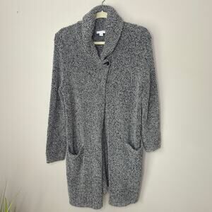 J.Jill Shawl Collar Gray Marled Terry Cardigan Long Sweater Pockets Small