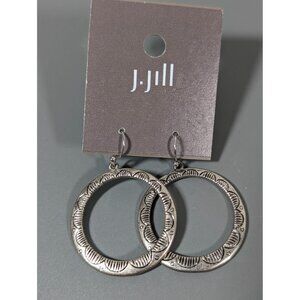 J.Jill Silver Tone Boho Southwestern Concho Round Hoop Dangle Earrings NEW