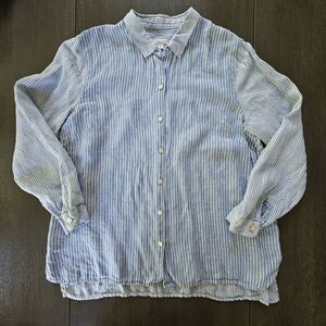 J.Jill Size L PETITE Love Linen Essential Shirt Blue White Striped Breathability