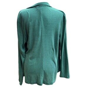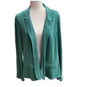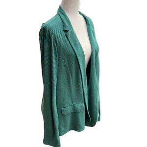 J.Jill Size L green navy striped open blazer jacket linen blend coastal nautical