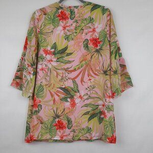 This listing is for J.Jill Size Petite S Multicolor Tropical Floral Flowy Bell 3/4 Sleeve Tunic
