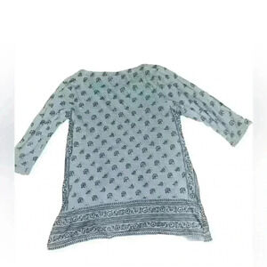 This J.Jill tunic shirt in size s is perfect for a casual occasion. The blue opal floral vine border pattern adds a touch of elegance to the shirt. The ballet sleeves and relaxed fit make it comfortable to wear. Made from soft European yarns, this tunic shirt is virtually wrinkle-free, making it easy to maintain. The A-line tunic and crew neckline add to the overall stylish look of the shirt. This tunic shirt is from the J.Jill brand and is a regular fit.