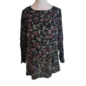 J.Jill Size XS Floral Peplum Hem Long Sleeve Tunic Top 100% Rayon Office