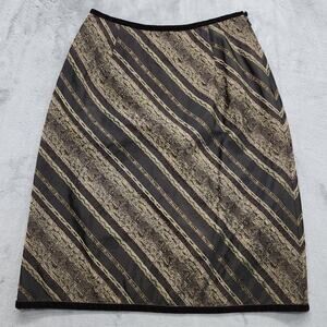 J.Jill Skirt Womens 2P PETITE Brown Velvet Trim Striped Wool Alpaca Blend A-Line Preppy Office Career