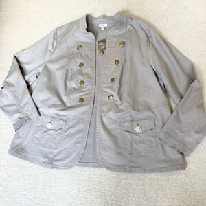 J.Jill Slub Chino Military Open Front Jacket in Light Zinc Gray - Women’s US 2X