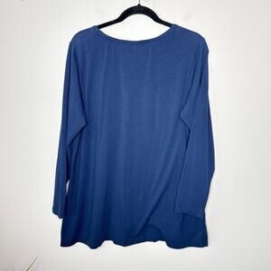 J.Jill Stretch Blue Floral Cross-Stitch Crew Neck Knit Long Sleeve Top Size 1X