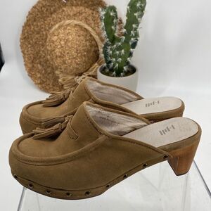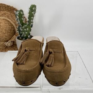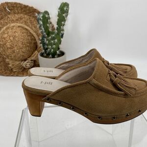 J.Jill Suede Tassel Clog Slip-On Block Heel Mule Tan Size 6