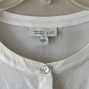 J.Jill Sz L White Shirt Collection A Line Hidden Button Up Tunic Scoop Neck