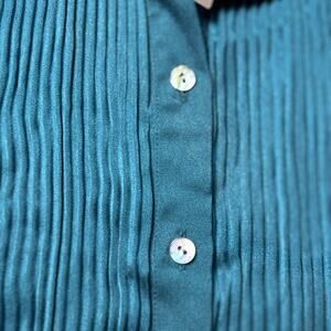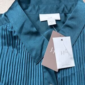 J.Jill Teal Button down Pleated blouse size small petite NWT