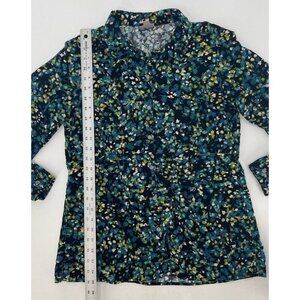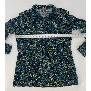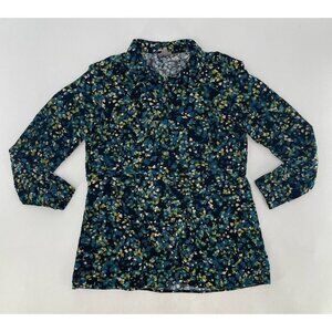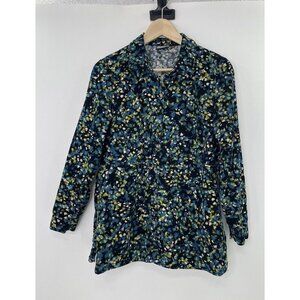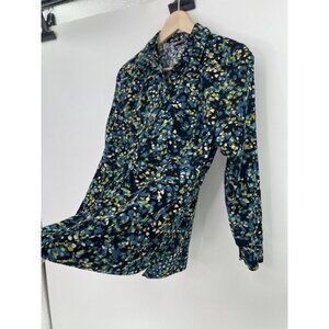 J.Jill Teal & Navy Floral Printed Corduroy Button-Up Long Sleeve Top Shirt Sz SP