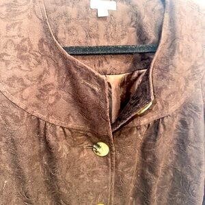 J.Jill Textured Brown Floral print Fall Jacket Chocolate Brown Dark Academia 4