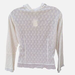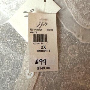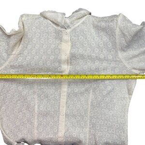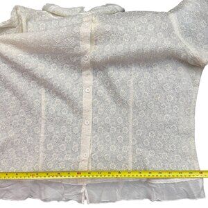 J.Jill Textured Lace Button-Up Blouse Size 2X White Ivory Sheer Ruffled Hem NEW