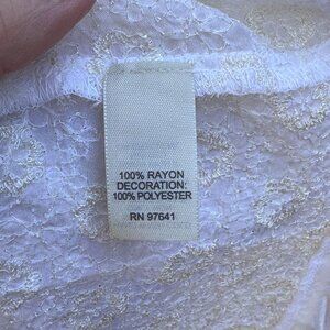 J.Jill ~ Elegant, sheer white blouse with textured ivory lace detailing. Size 2X. Button-up with scalloped collar and ruffled hem. Perfect for professional or formal settings. Sophisticated. Luxe.