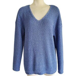 J.Jill Textured Open Weave Cotton Blend Sweater Periwinkle Blue Size M