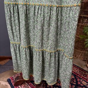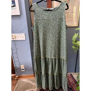 J.Jill Tiered Floral Print Green Maxi Dress size L