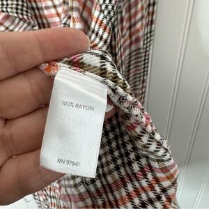 Add a pop of color to your wardrobe with this J.Jill top in a vibrant plaid pattern. The long sleeve blouse features a flattering V-neckline and a button closure, making it perfect for any occasion, from casual outings to business meetings. The lightweight rayon material ensures comfort, while the machine washable fabric makes it easy to care for. This regular fit top is available in size PM and is ideal for petite women. Whether you're dressing up or keeping it casual, this colorful and preppy blouse is a must-have addition to your wardrobe.