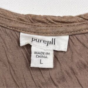 JJill Pure Jill Top Tunic Crinkle Long Sleeve Tan Brown Scoop Neck Neutral Minimalist Lagenlook Office Career Business Comfy Cotton