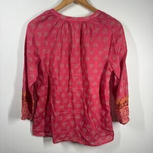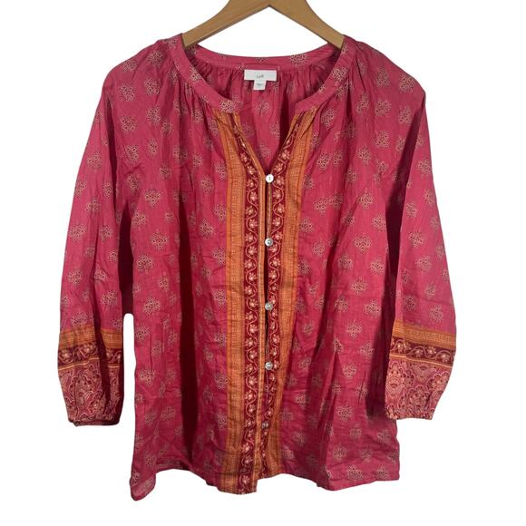 J.Jill Top Women S Pink Orange Mixed Print Button Up Boho Light Weight Tunic
