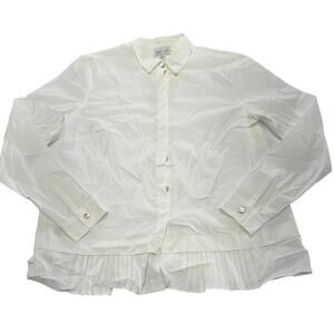 J.Jill Top Womens X Small White Shirt Collection Button Down Pleated Hem Blouse