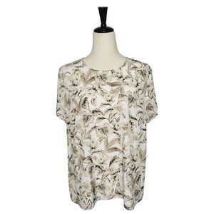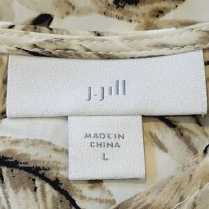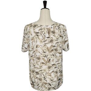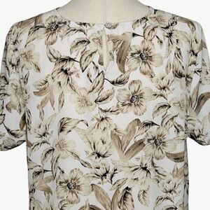 J. Jill Toupe & Brown Floral Keyhole Closure Short Sleeve Blouse Size L