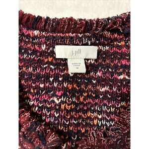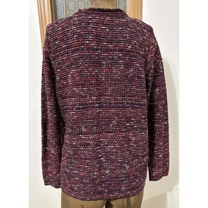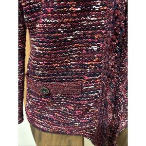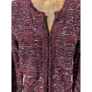 J.Jill Tweed Cardigan Women’s Medium Cranberry Fringed Knit Blazer Jacket