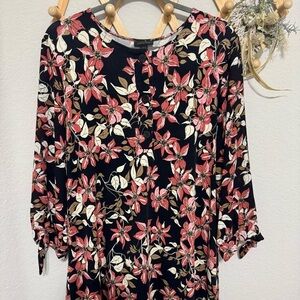 J.Jill Wearever Black Floral Tunic Rayon Blend Resortwear Mixed Shift Dress Sz L