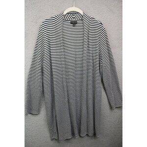J.Jill Wearever Collection Black & White Striped Open Front Cardigan-Size Large