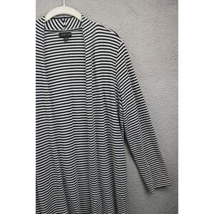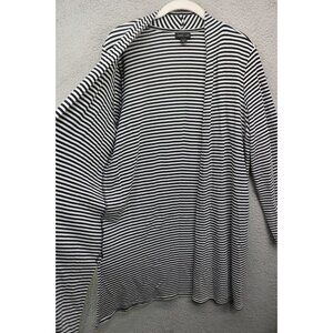 J.Jill Wearever Collection Black & White Striped Open Front Cardigan-Size Large. Item is in Great Condition. The material is 97% Rayon and 3% Spandex. Laying flat measuring armpit to armpit it is 23'' and 31'' in length.