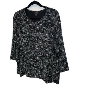 J.Jill Wearever Collection Black with White Florals Size Large