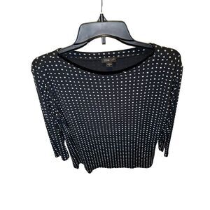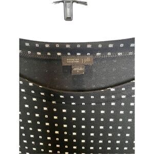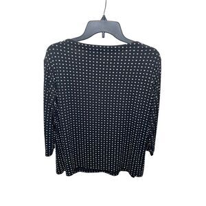 J. Jill Wearever Collection top. Size Small. Black top with geometrical shapes. 3/4 sleeves. Colors are black, white and a bit of bluish-gray. 95% Rayon and 5% Spandex. Machine wash. Top is Preowned and in good condition. Contact me with any questions.