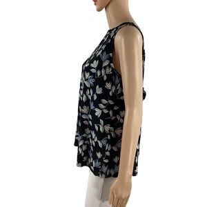 J.Jill Wearever Floral Sleeveless Tank Top Black Multicolor Drape Back Small