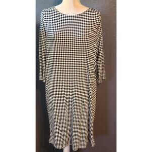 J.Jill Wearever Houndstooth Black & White Midi Pullover Dress Size Medium