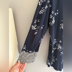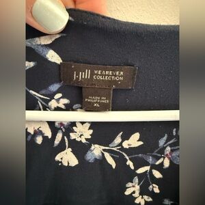 J.Jill Weaver Collection Floral Top Womens SZ XL Navy Long Sleeve V Neck Mature