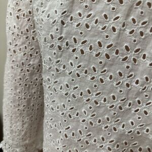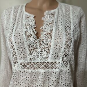 J.Jill White Eyelet Lace Blouse Size Small Boho Cotton Crochet Trim India