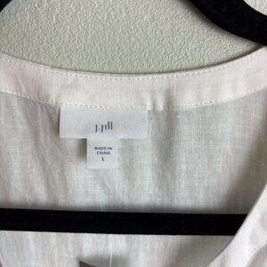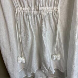 J.Jill White Linen Blend Sleeveless Tunic Top Pom Tassel Waist Drawstring L NWT