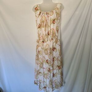 J. Jill White Paisley Floral Sleeveless Asymmertrical Midi Dress Womens sz M