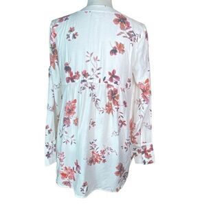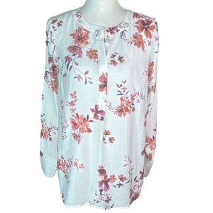 J.Jill Wms Sz XS Cream Floral Print Lightweight Long Sleeve Tunic Top Blouse