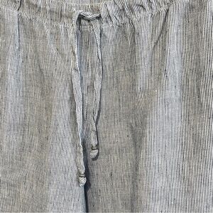 J.Jill Woman 100% LINEN Blue White Stripe Pants Size L