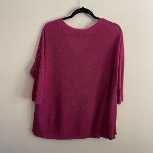J.Jill Women M Petite Fuchsia Linen Blend Knit Pockets 3/4 Sleeve V-Neck Sweater.