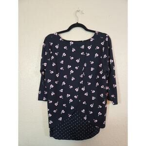 J.Jill Women's Black Floral Print Round Neck 3/4 Sleeve Blouse Top Size Medium
