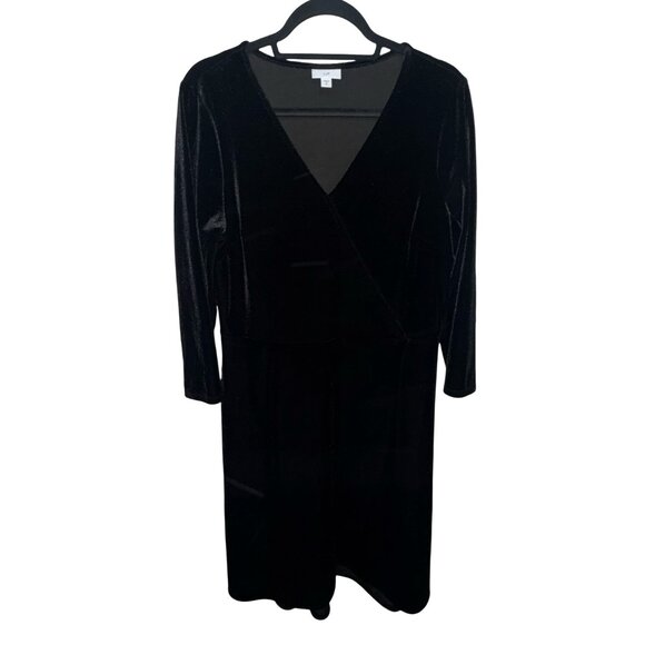 J.Jill Women's Black Velvet/Velour Faux Wrap A Line 3/4 Sleeve V-Neck Dress, Size Med Tall , Beautiful Dress! Perfect for the holidays! Excellent pre owned condition, 90% polyester and 10% Spandex.