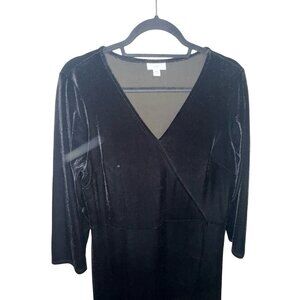 J.Jill Women's Black Velvet/Velour Faux Wrap A Line 3/4 Sleeve V-Neck Sz M Tall
