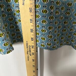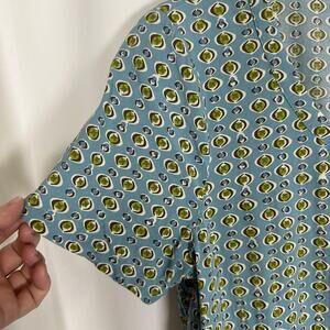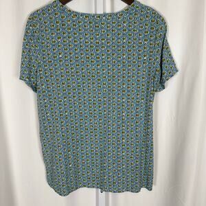 J.Jill Women's Blouse Blue Green Retro Geo Print Short Sleeve Pullover M Petite