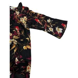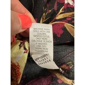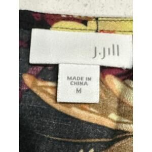 J.Jill Women’s Blouse Top Black Red Floral Bird Medium Bell Sleeve Dark Romantic