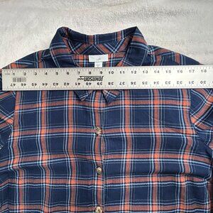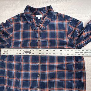 J. Jill Womens Blue Orange Plaid Button-Up Shirt XL Cotton Long Sleeve Casual