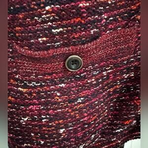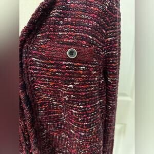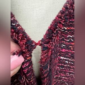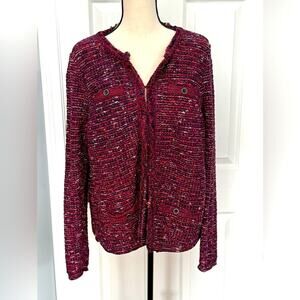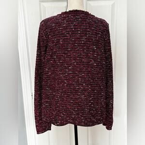J.Jill Women's Burgundy Red Tweed Fringed Knit Blazer Cardigan Jacket L TALL